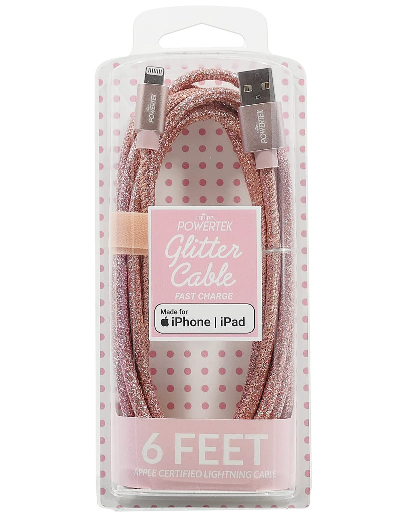 LIQUIPEL Powertek Glitter MFi Certified Charger Compatible for Apple iPhone, iPad, 6ft Cable, Lightning to USB Cable Cord, Fast Charging Lightning Cable (Rose Gold)